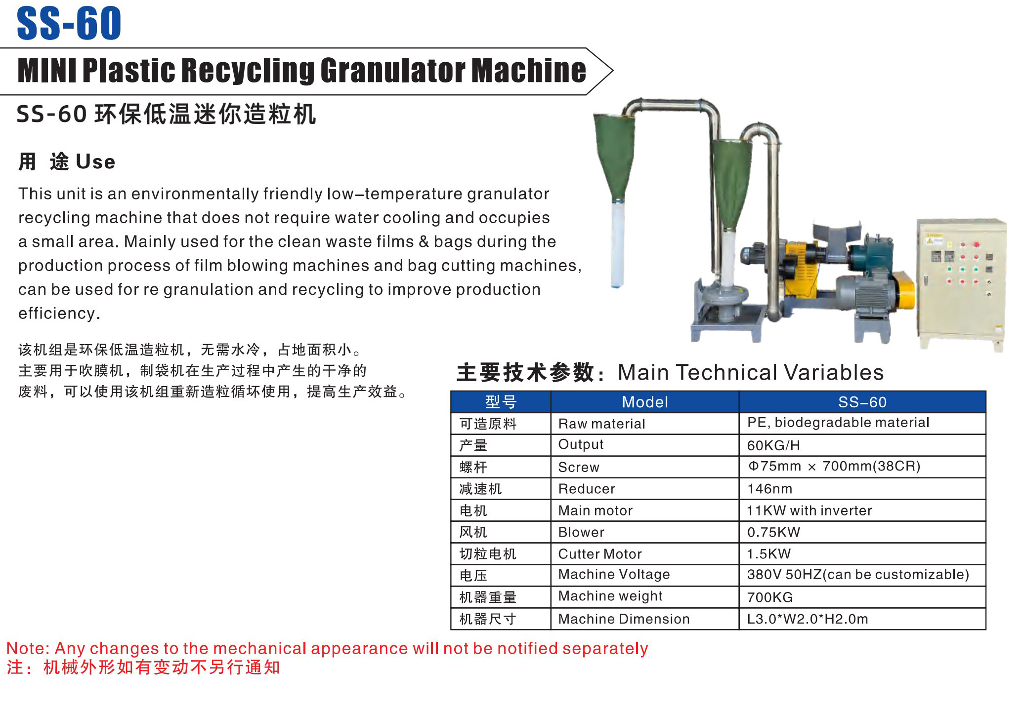 SS-60環(huán)保低溫迷你造粒機(jī)